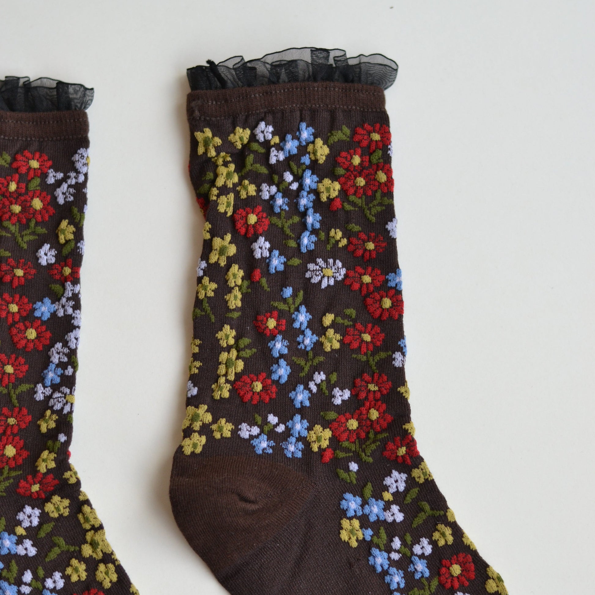 Fall Socks | Chocolate Brown with Primary Color Flowers