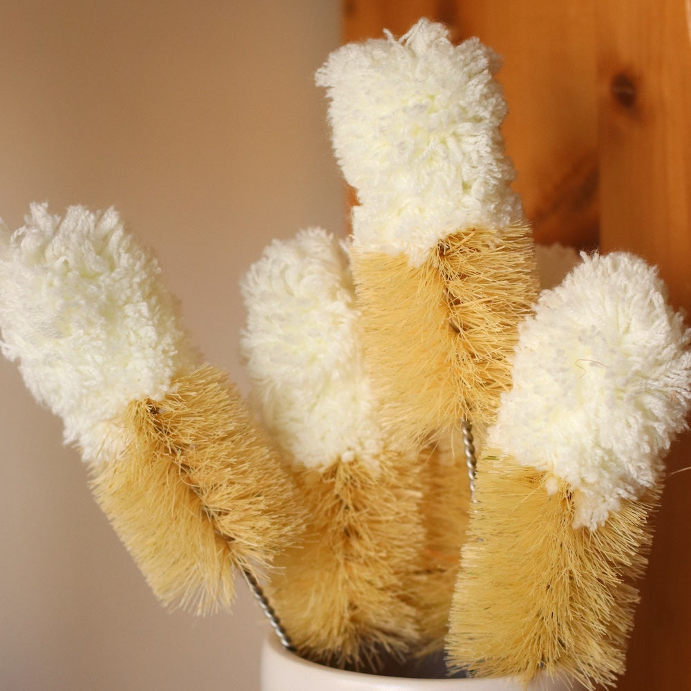 Featuring a dual-layer bristle design, this brush combines stiff natural bristles and soft fiber for cleaning both tough stains and delicate cup surfaces. The ergonomic wooden handle offers a comfortable grip for effortless scrubbing of mugs, cups and small containers. * Material: Natural bristle, microfiber, stainless steel, bamboo * Size: 12.60” / 32cm