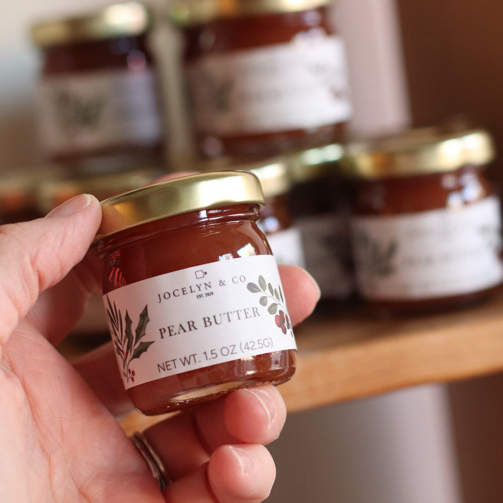 A taste of pure summer bliss captured in a perfectly portioned 1.5oz glass jar available year round. This exquisite butter showcases the sweetness and essence of ripe pears, delivering a burst of fruity goodness with every spoonful. Pairs very well with a glass of Moscato.
