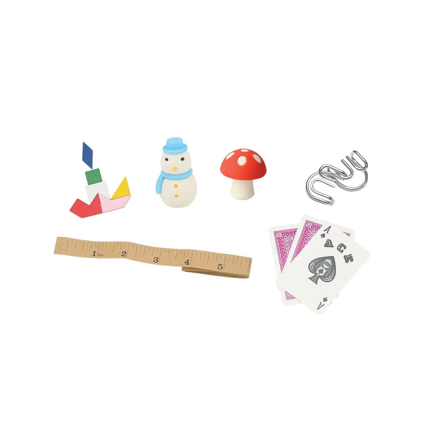 If you aren't familiar with the Christmas Cracker then these striped velvet crackers are great ones to start with! Pull the ends by yourself or with a friend and hear the 'pop' as the cracker breaks open and reveals fun surprises inside. Each cracker contains a red or green paper hat, silly joke and premium gift like a mushroom eraser, wooden puzzle, tape measure or magic trick!
