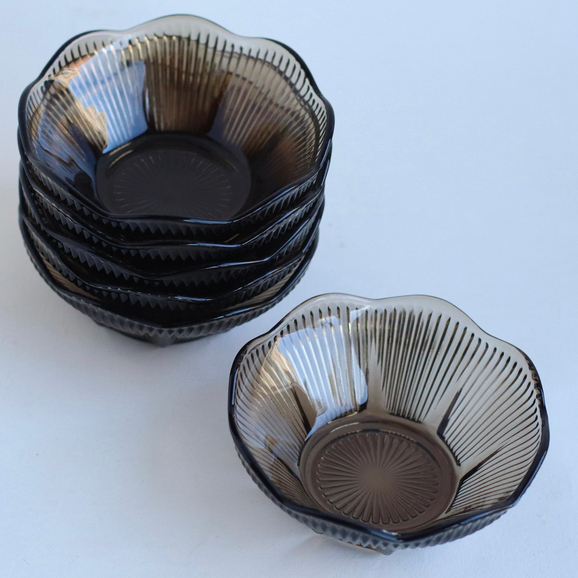 Scalloped Brown Smoke Glass Snack Bowls , Set of 6