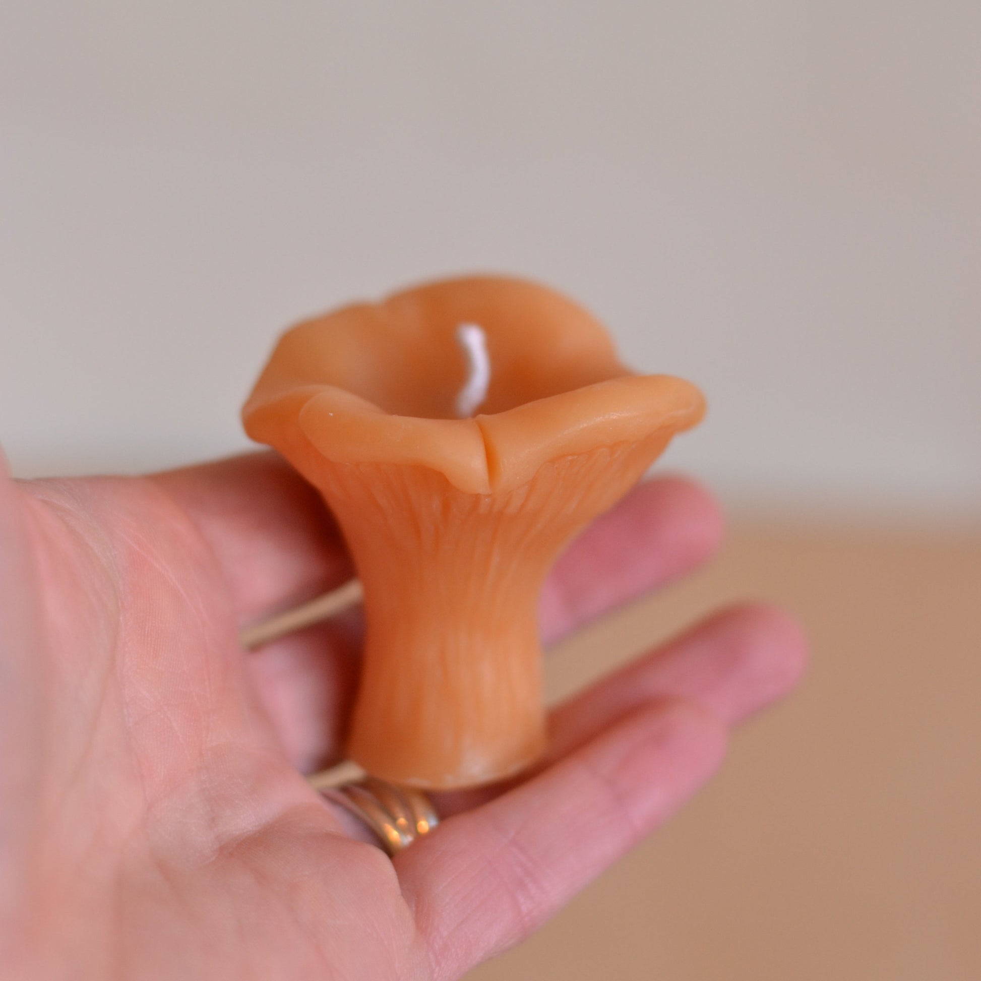 Realistic Chanterelle Candle made of all natural refined beeswax and soy wax. Handmade one at a time in Pittsburgh, PA. Beautiful beeswax candles have a natural honey scent, burn longer and brighter than other types of wax candles, and drip very little, if burned correctly.